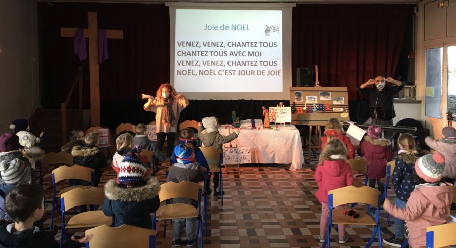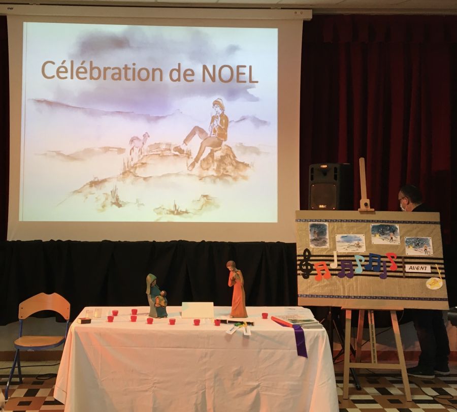 Toutes les classes de l'école ont participé, aujourd'hui, par niveau à la célébration de Noël.